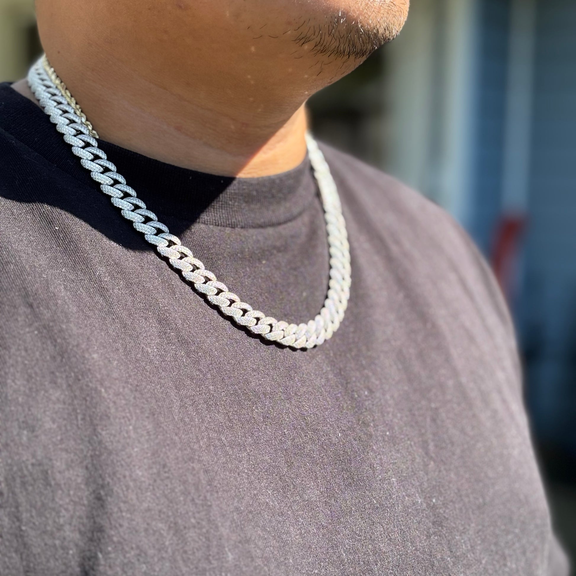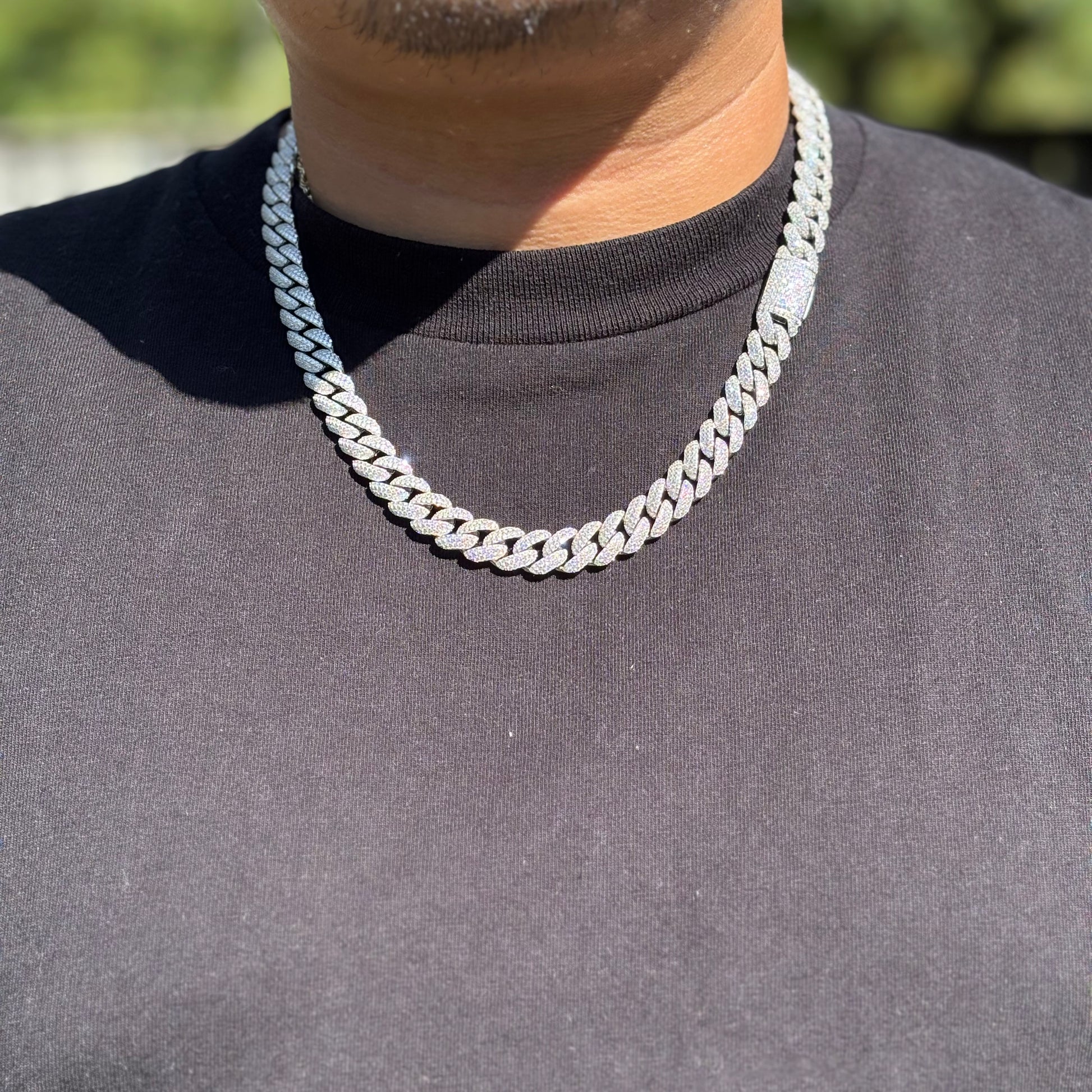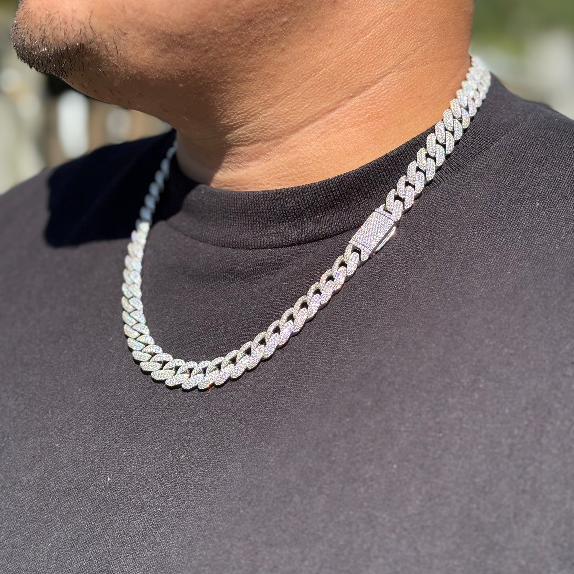 With 3 Rows of VVS Clarity Moissanite on each link, this cuban link is calm but cold as the artic. Approximately 26.88 Ct of princess cuts cover this entire chain handmade with .925 silver.