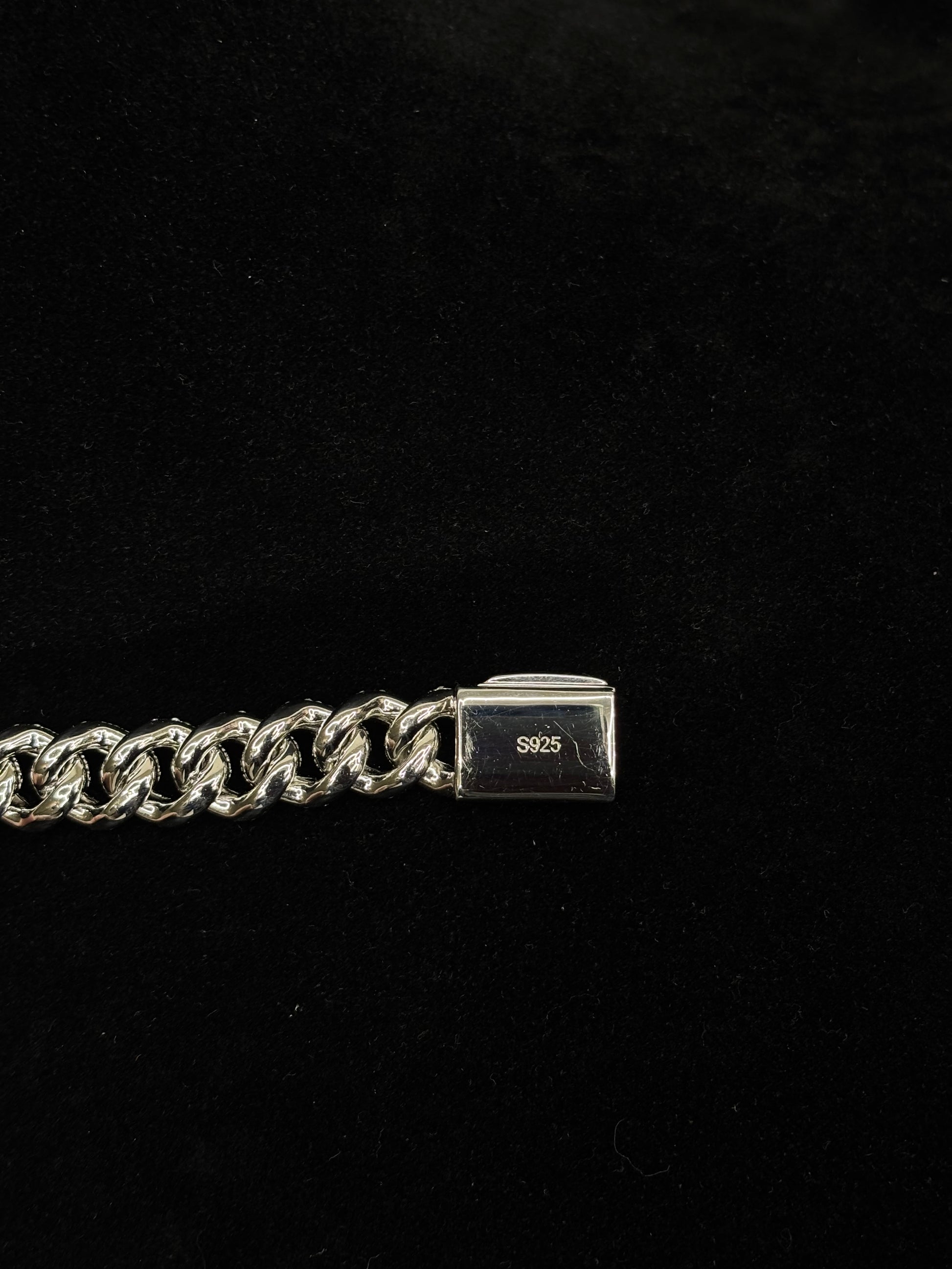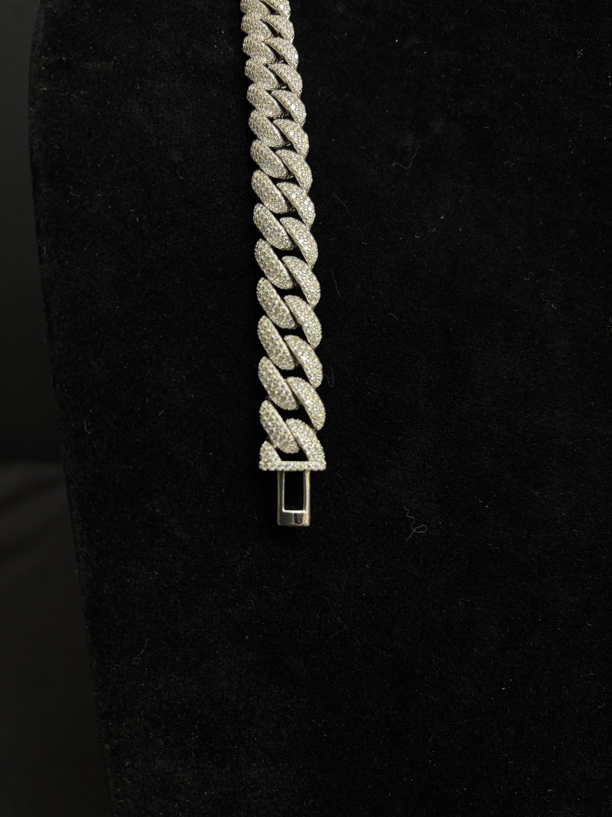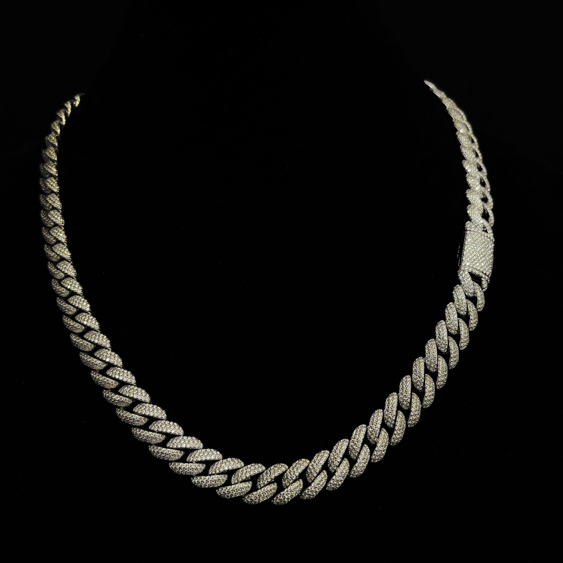 With 3 Rows of VVS Clarity Moissanite on each link, this cuban link is calm but cold as the artic. Approximately 26.88 Ct of princess cuts cover this entire chain handmade with .925 silver.